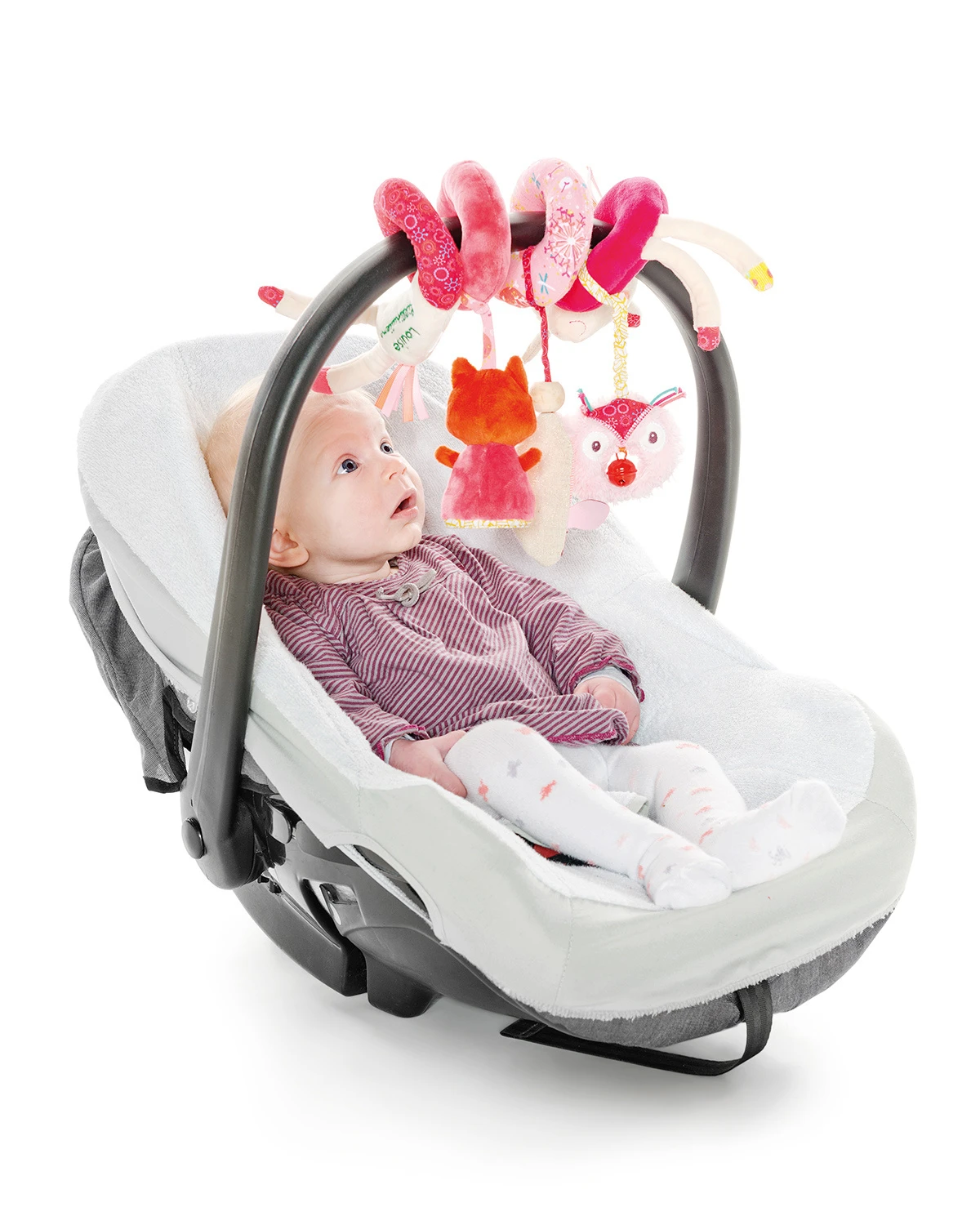 Louise de eenhoorn kronkelt rond het park, de buggy of het kinderzitje en heeft allerlei activiteiten om je baby te prikkelen: een uiltje met belletje, een zacht pluimpje en een vosje met spiegel!