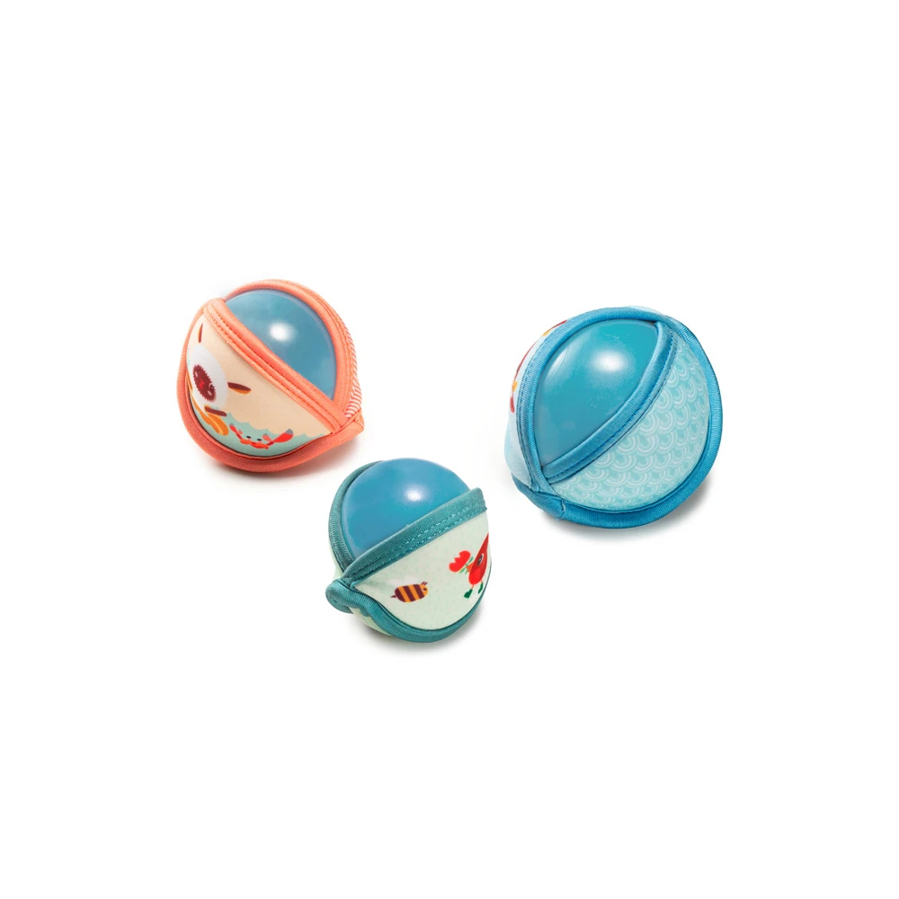 Op deze 3 drijvende badballen van Lilliputiens in verschillende afmetingen herken je de boerderijdieren. Door het werpen en vangen van de ballen in het water worden de balvaardigheid en hand-oog coördinatie geoefend. Waterpret gegarandeerd !