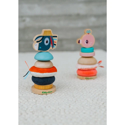 Vrolijke stapelpiramide van Lilliputiens om de fijne motoriek te ontwikkelen. Stapel de onderdelen creatief op elkaar tot je Ignace de aap compleet hebt opgebouwd.